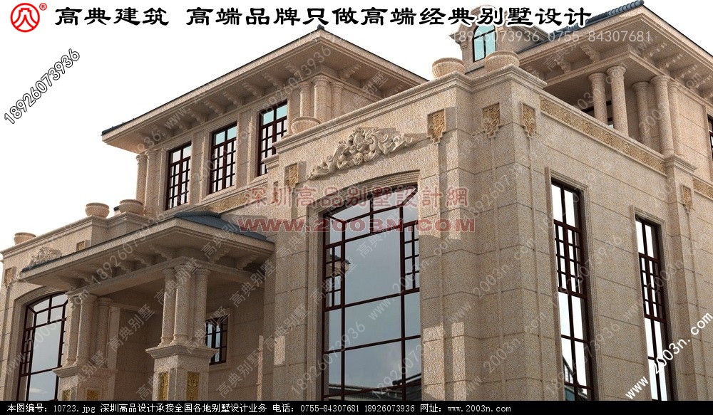 广东省纯石材新欧式别墅外观效果图