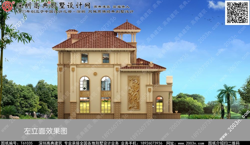 t61035号别墅设计图纸规格介绍: