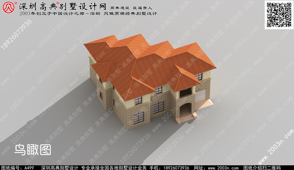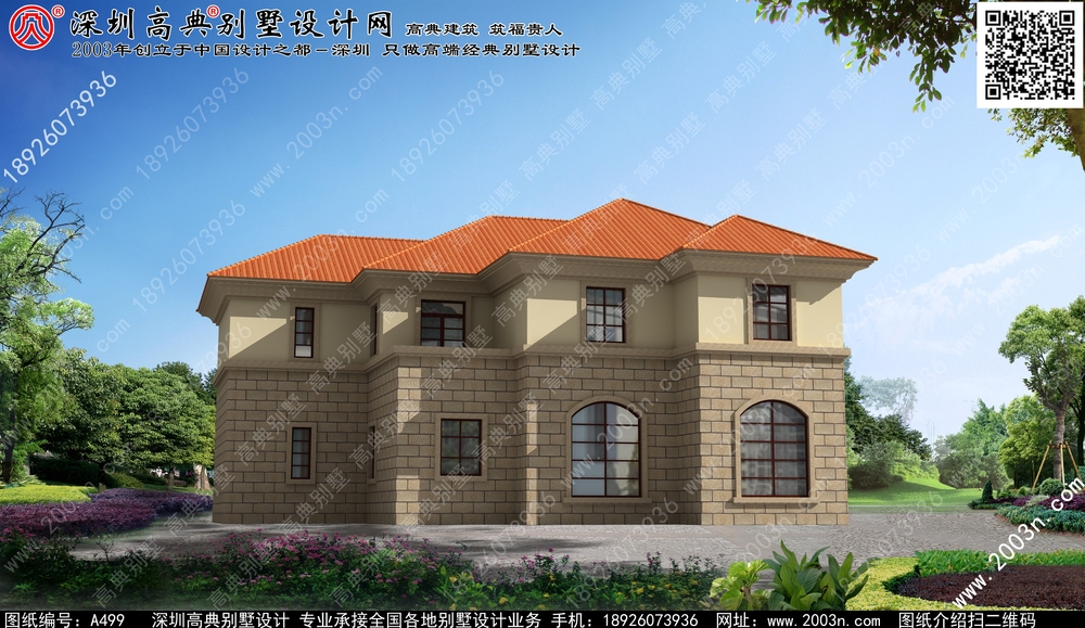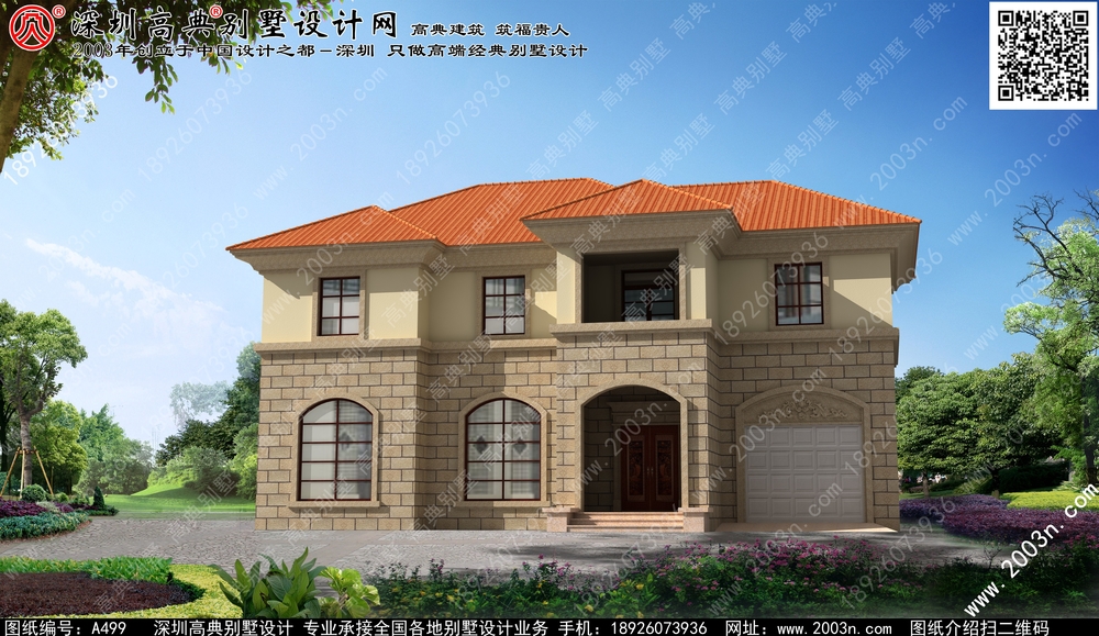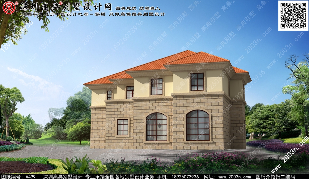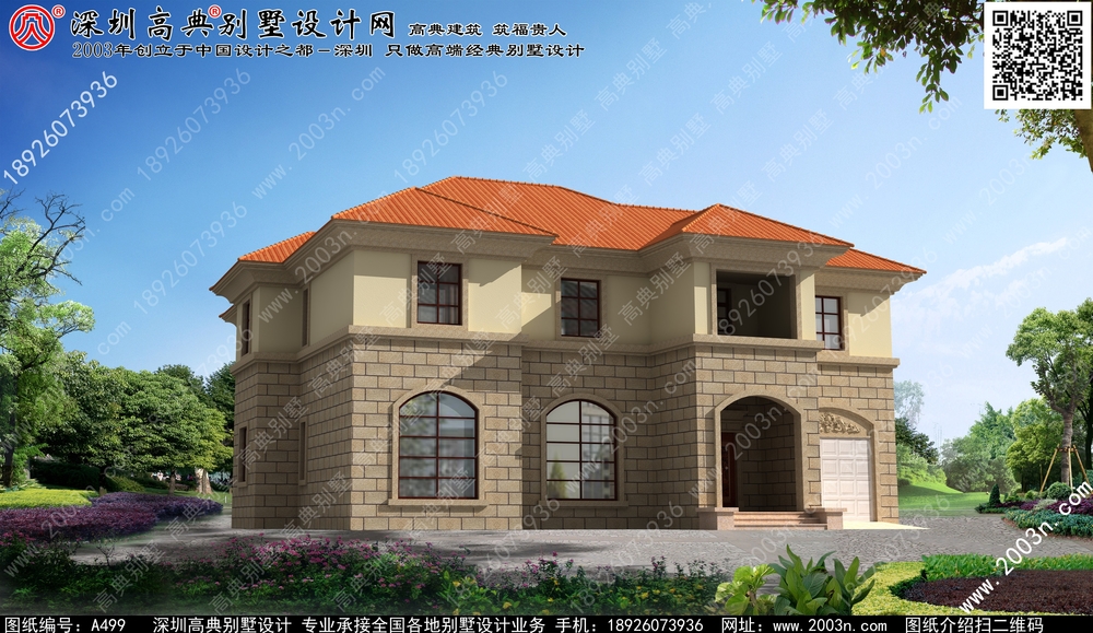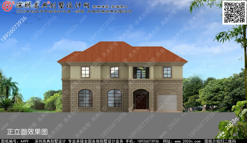 二层别墅外观效果图首层209平方米图纸编号a499