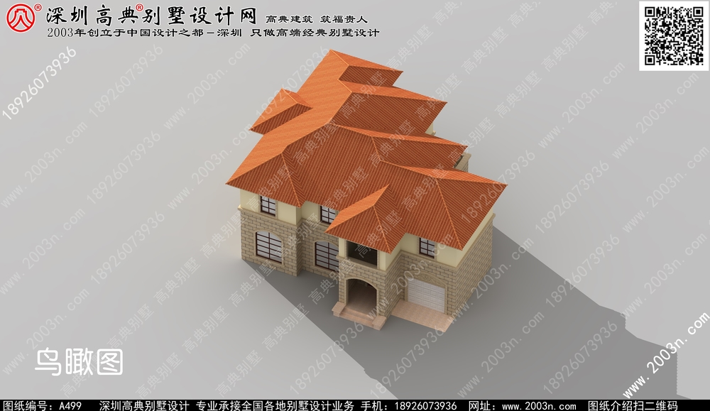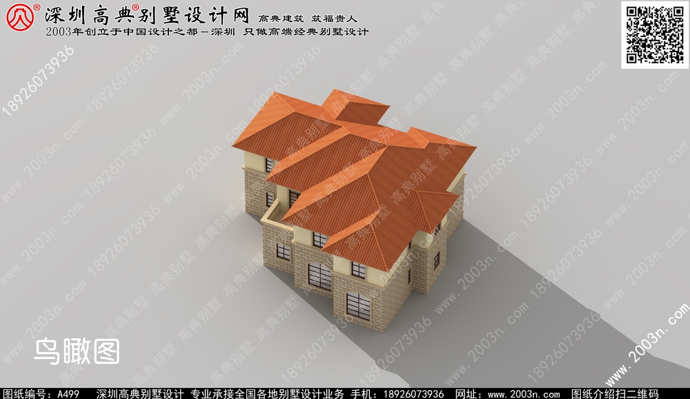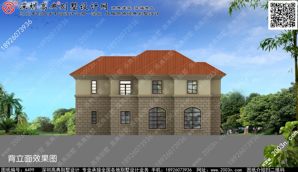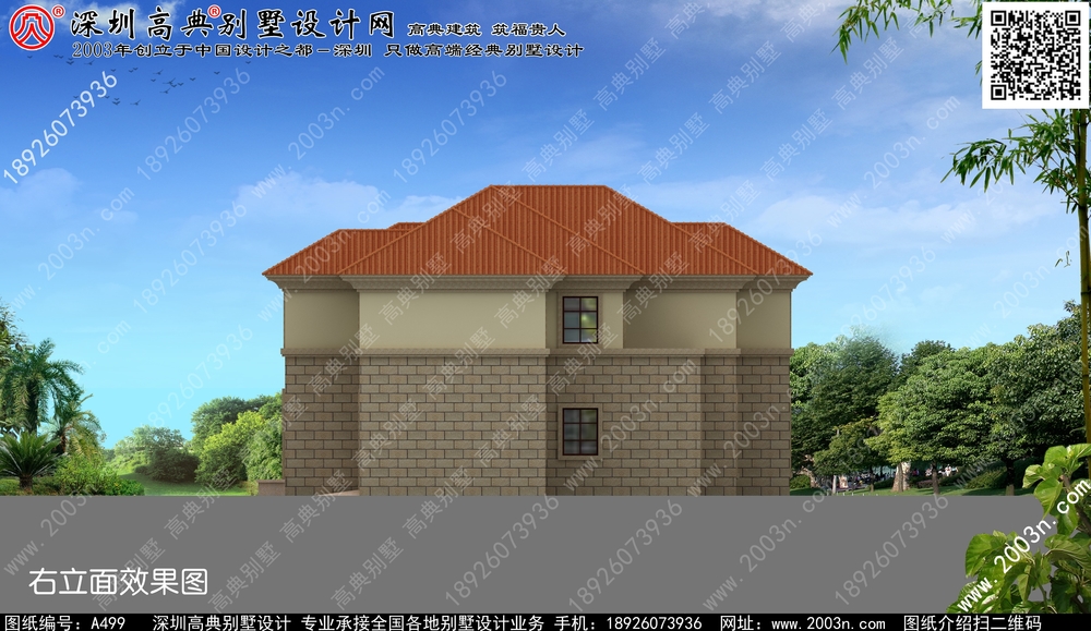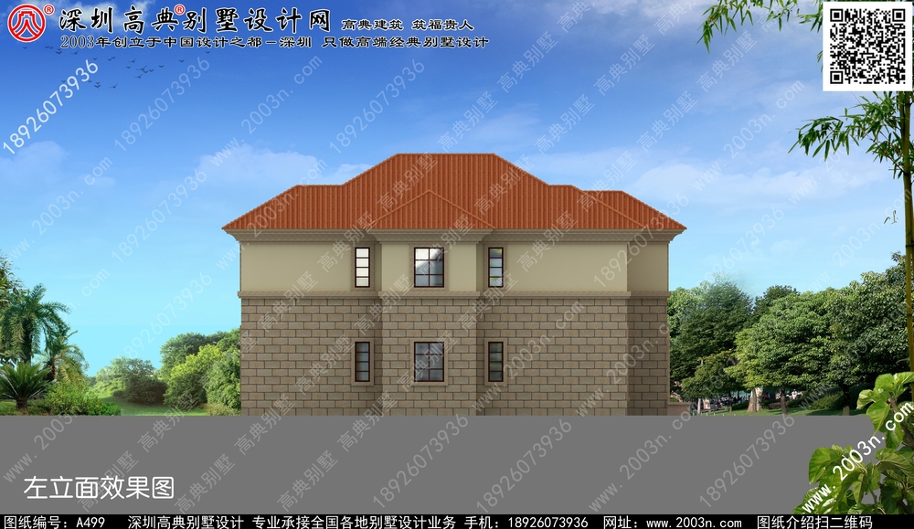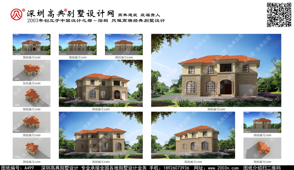 二层别墅外观效果图首层209平方米图纸编号a499