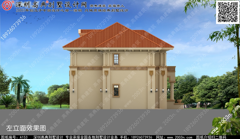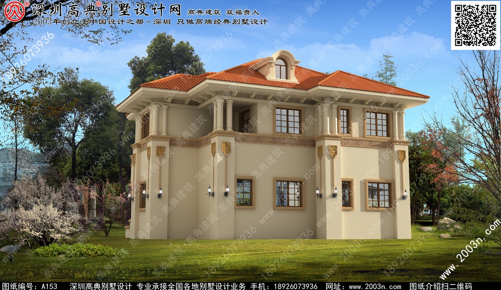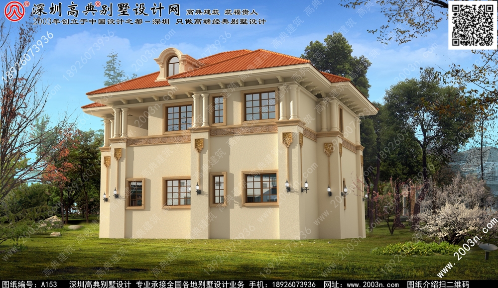 A153号别墅设计图纸及效果图介绍:
