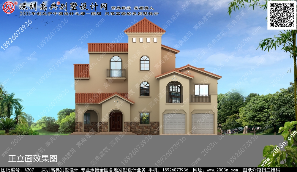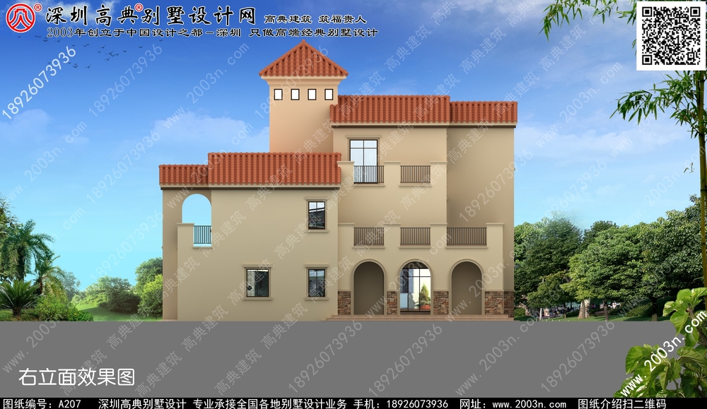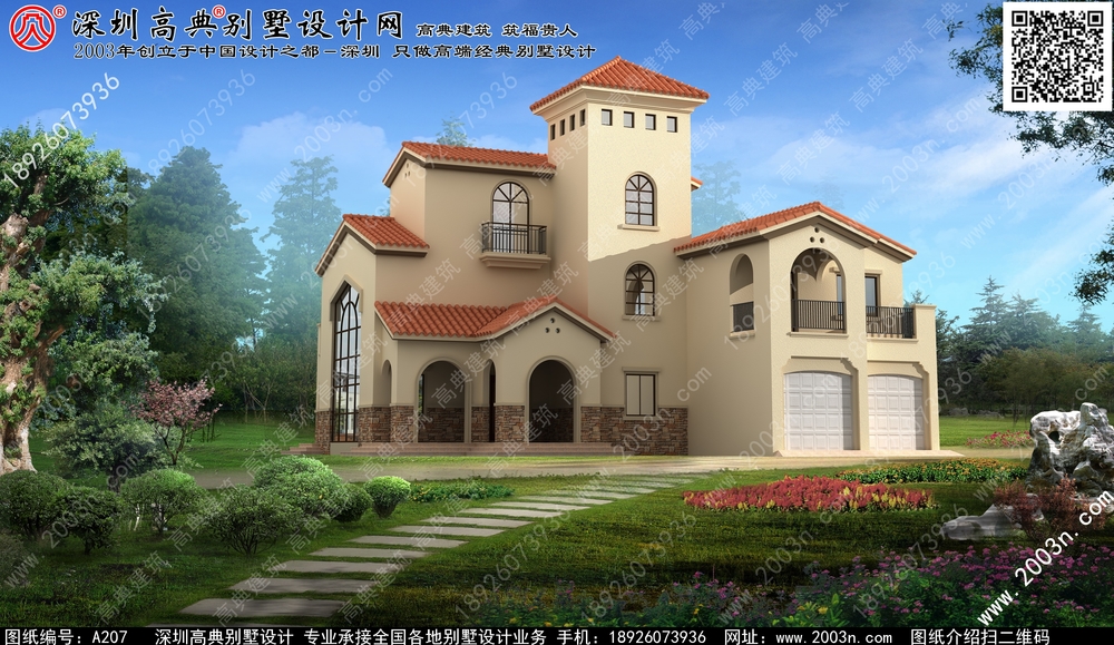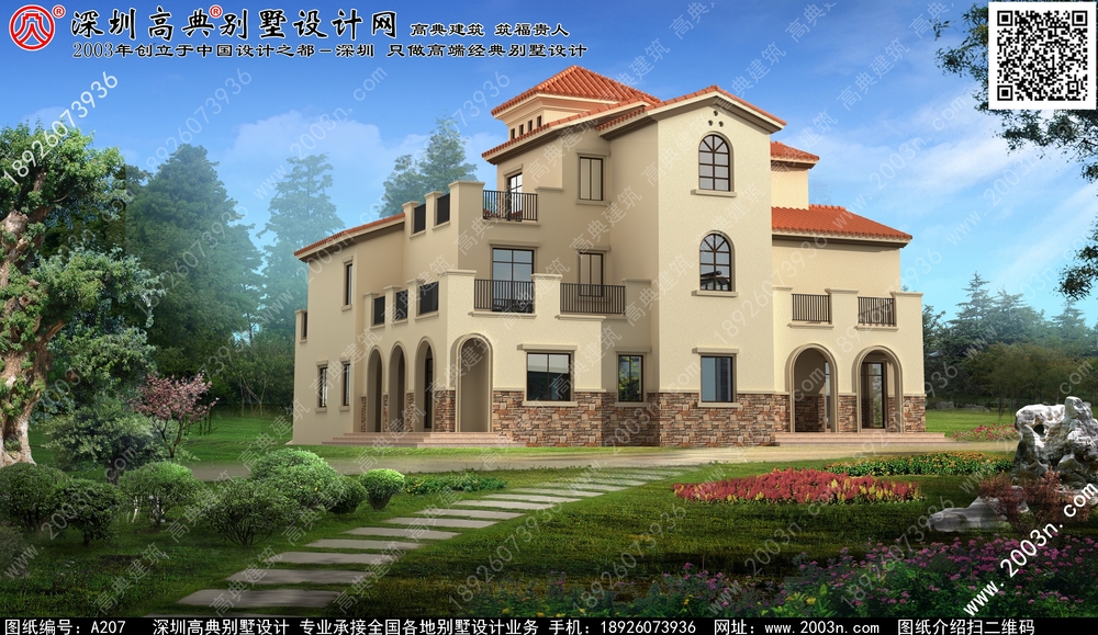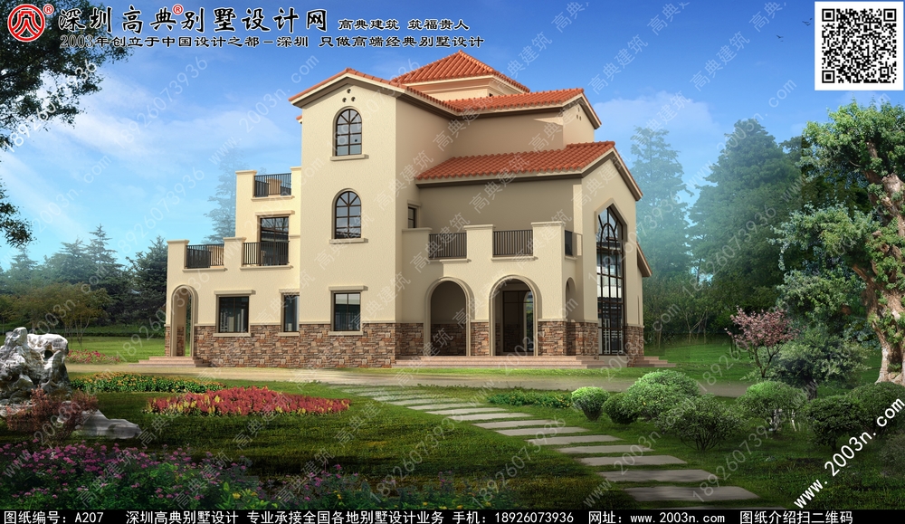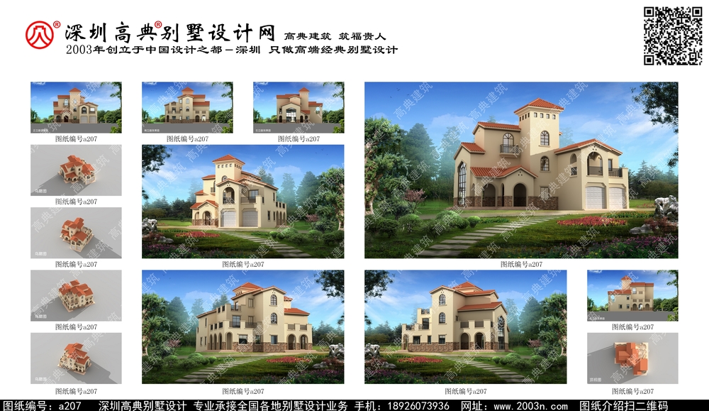 A207号别墅设计图纸及效果图介绍: