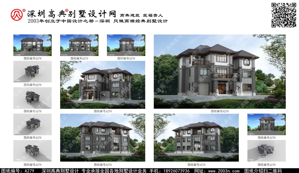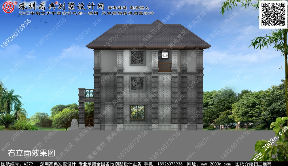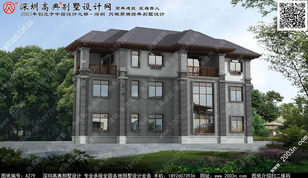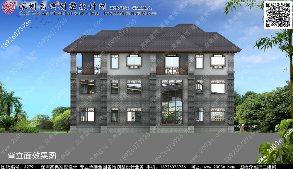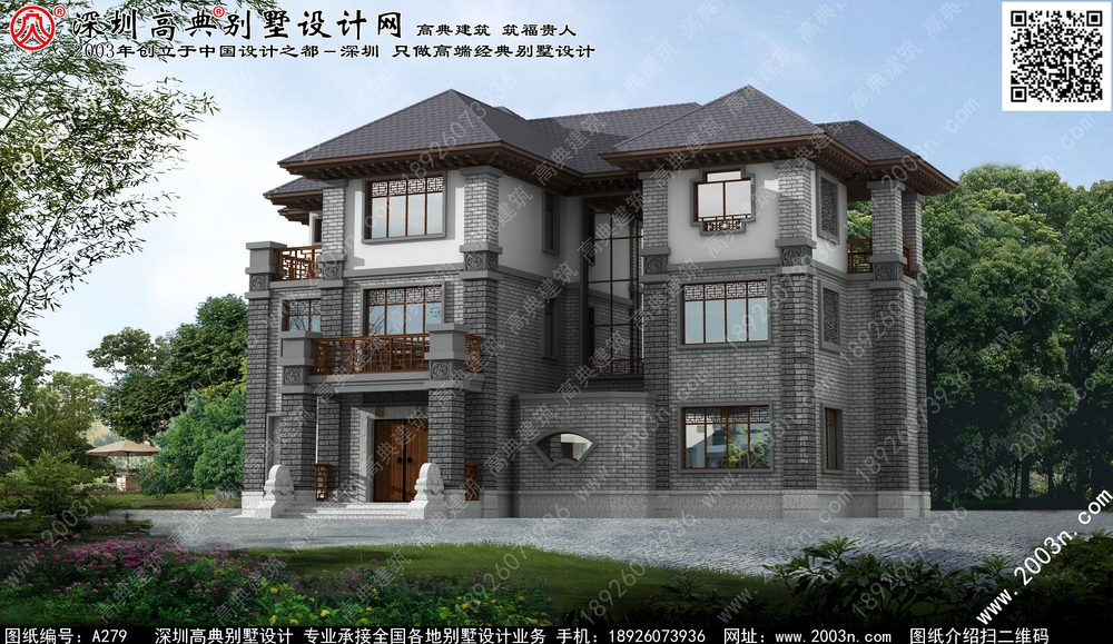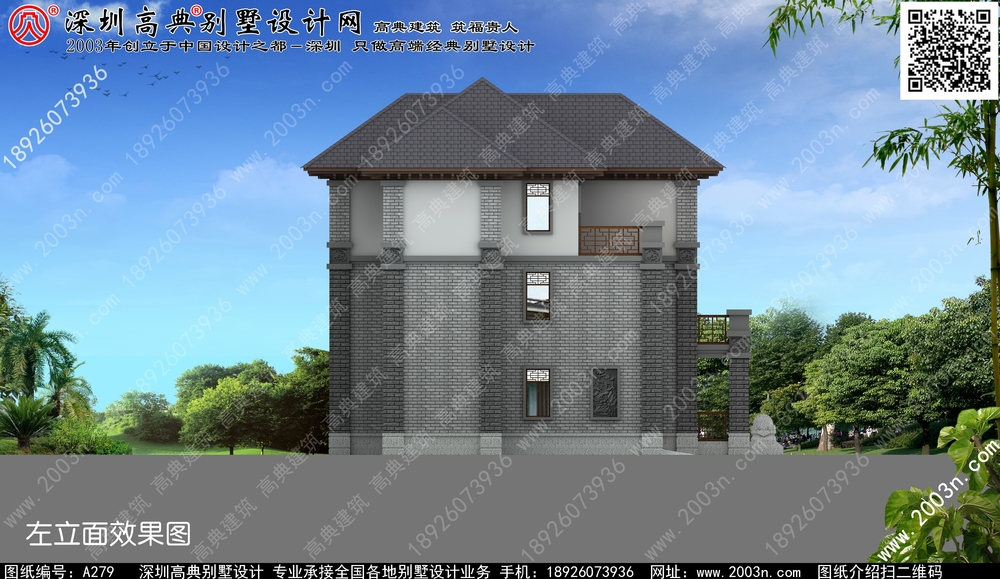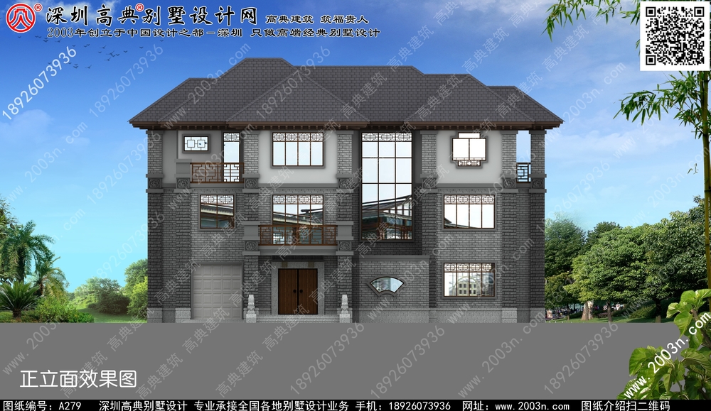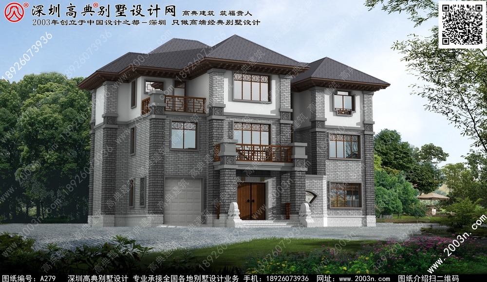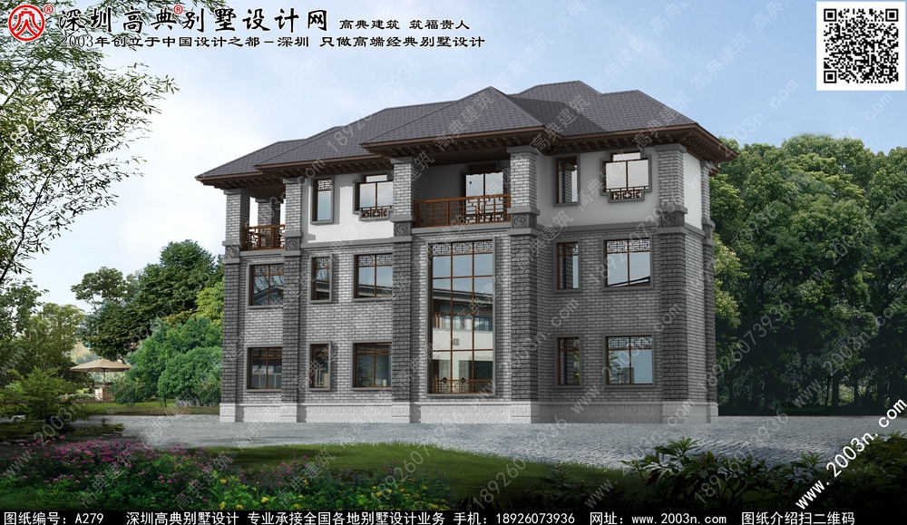 新中式别墅, 农村别墅外观效果图, 三层别墅设计