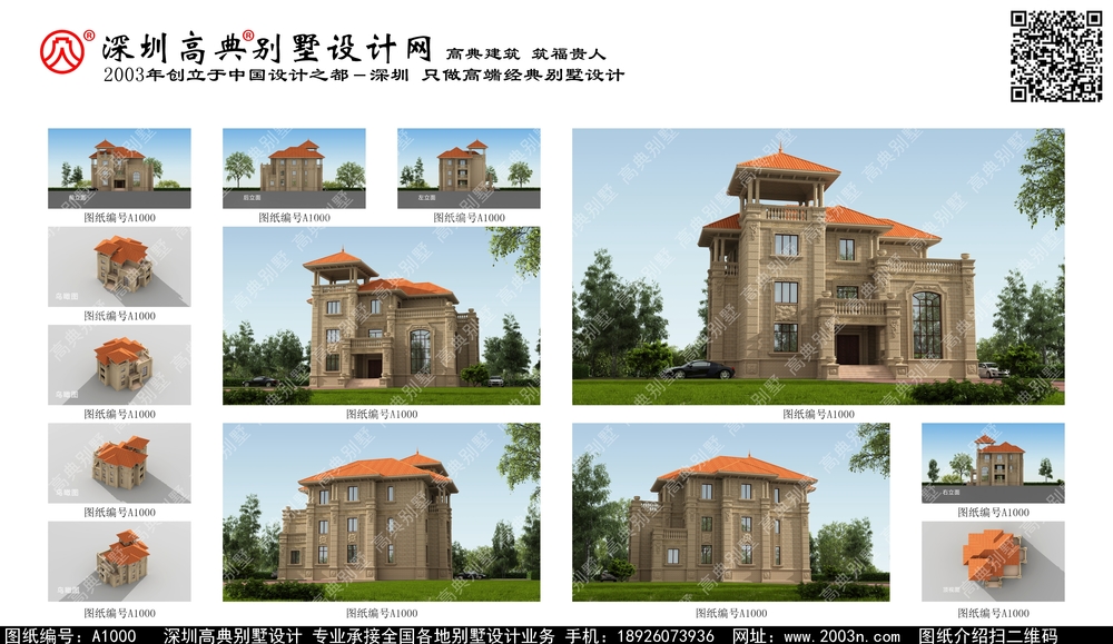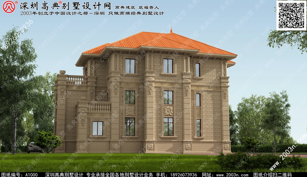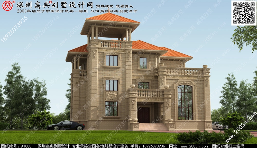 三层欧式豪华别墅外观, 农村三层半别墅设计图, 房屋自建设计图3层