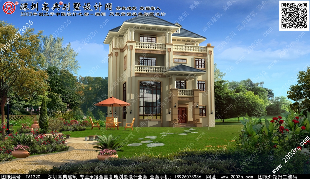 欧式四层别墅设计效果图首层139平方米图纸编号T61220