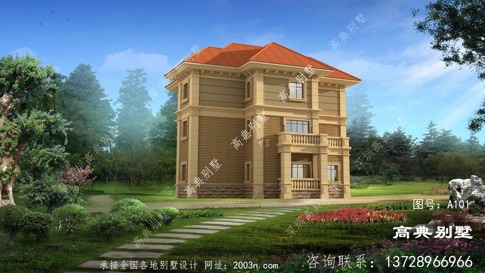 A101号别墅设计图纸及效果图介绍: