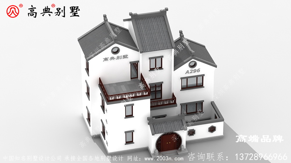中式庭院别墅设计,内部格局非常合理,是生活的好选择,室内客厅和旋转楼梯设计,进入会感觉很大气,二楼预留中间走廊空间,外观阳台更加惬意。