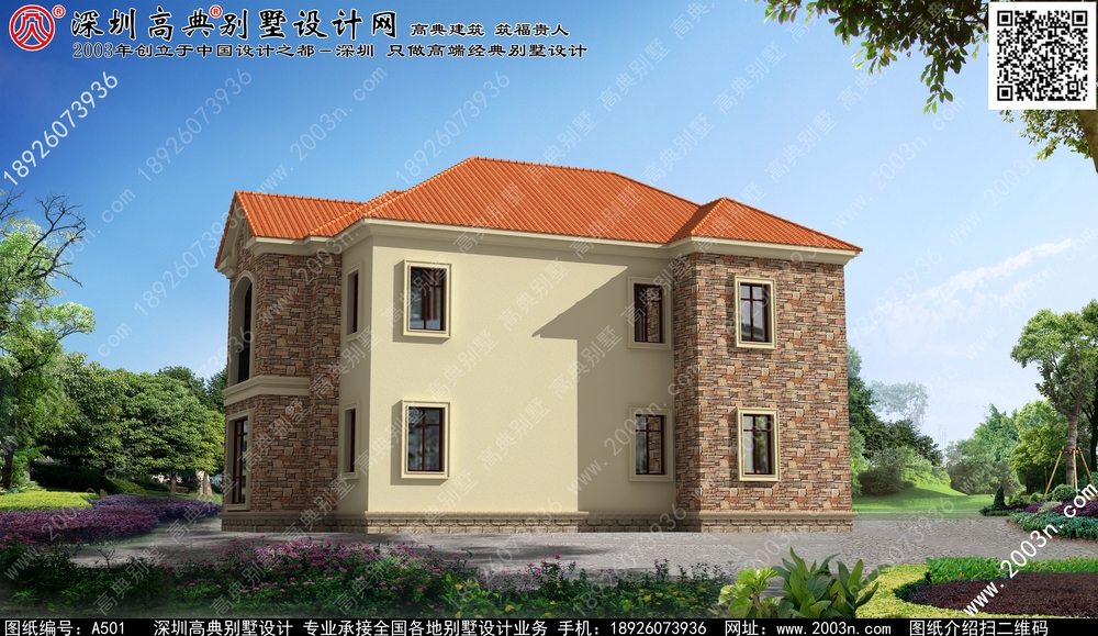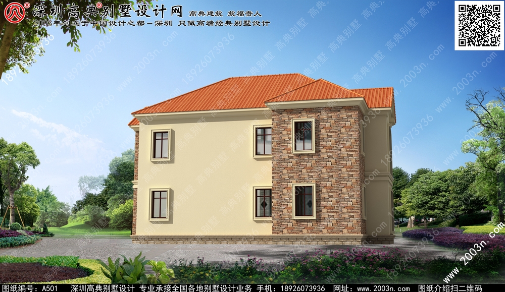 农村二层别墅图片大全首层169平方米图纸编号a501