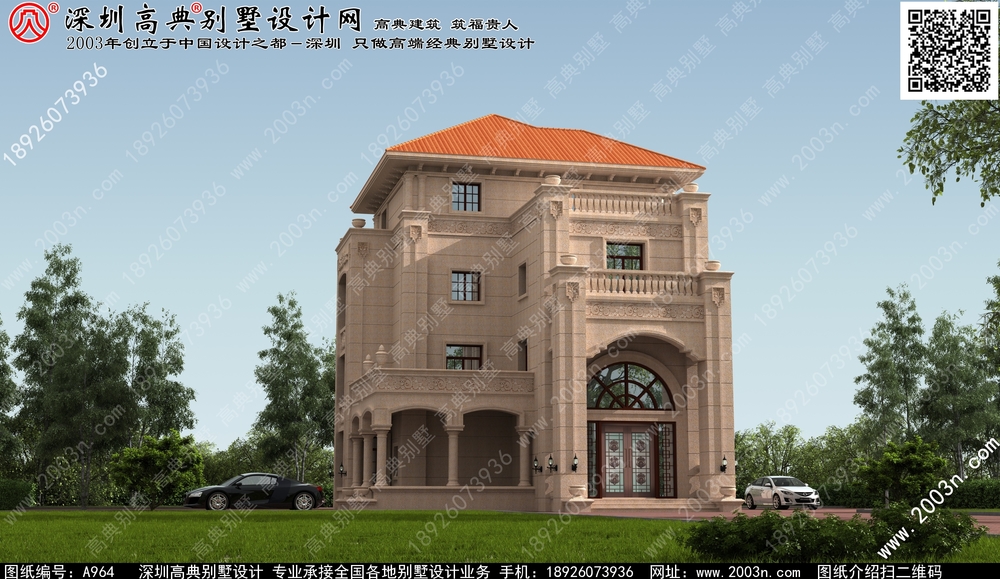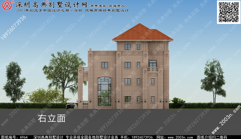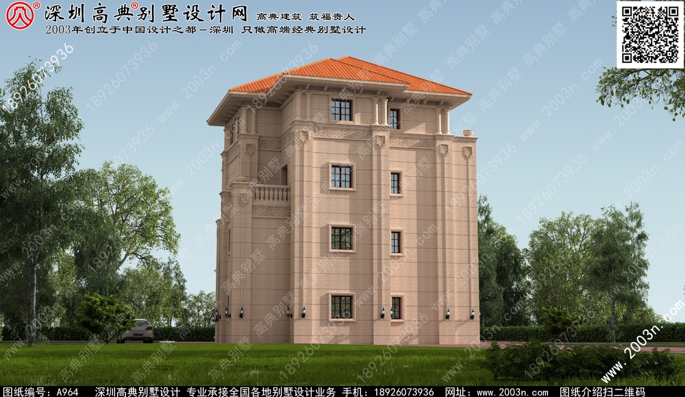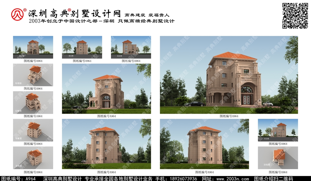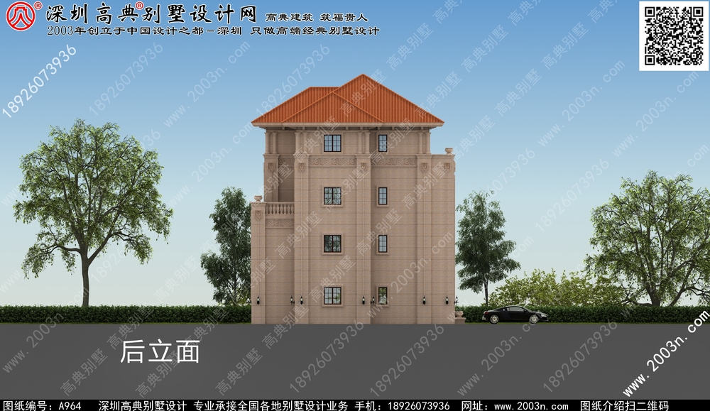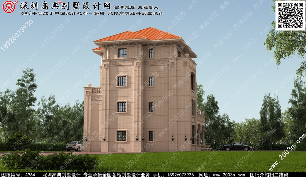 四层别墅设计外观效果图首层178平方米图纸编号a964