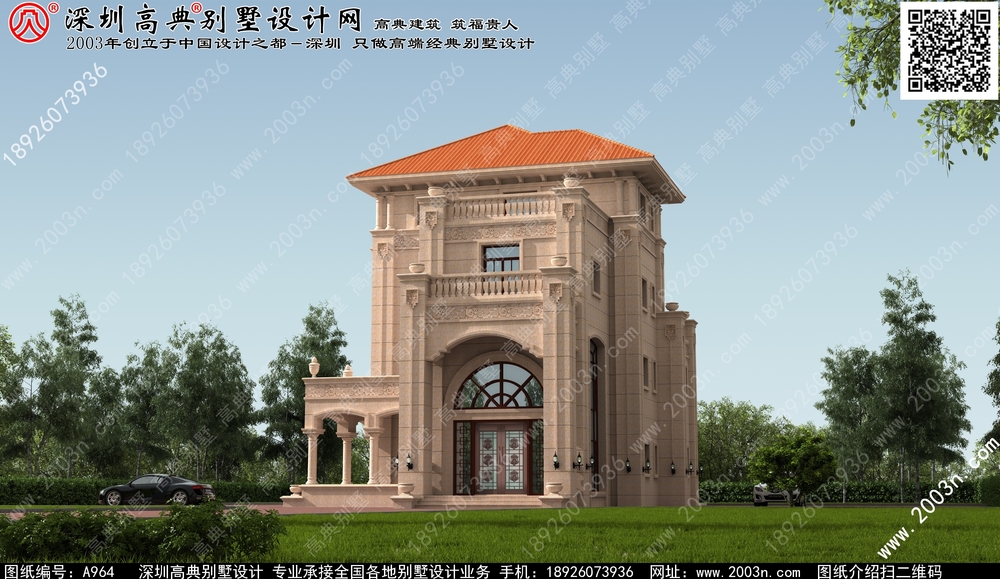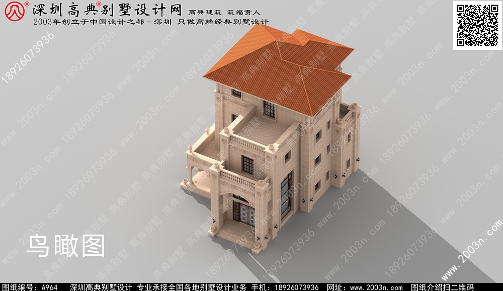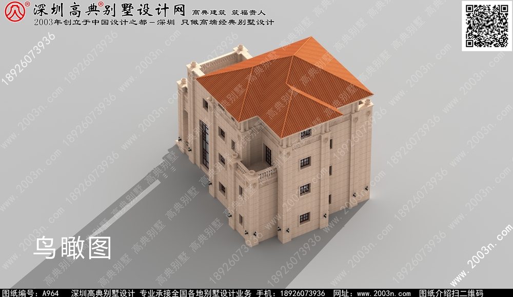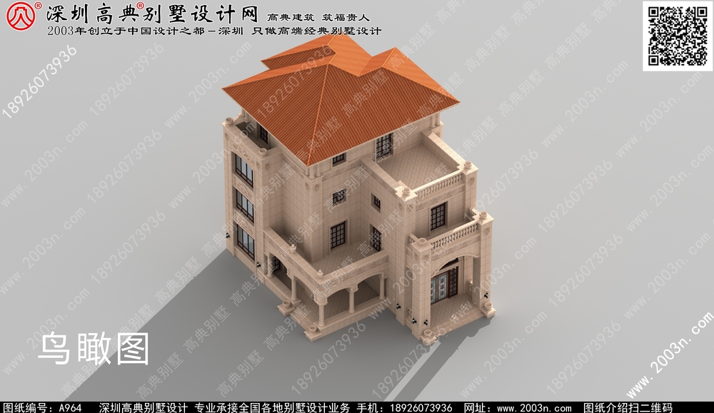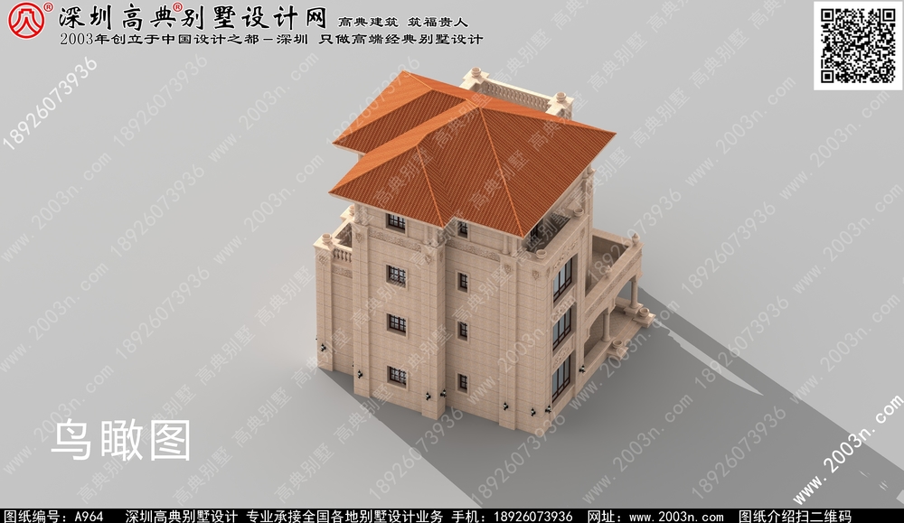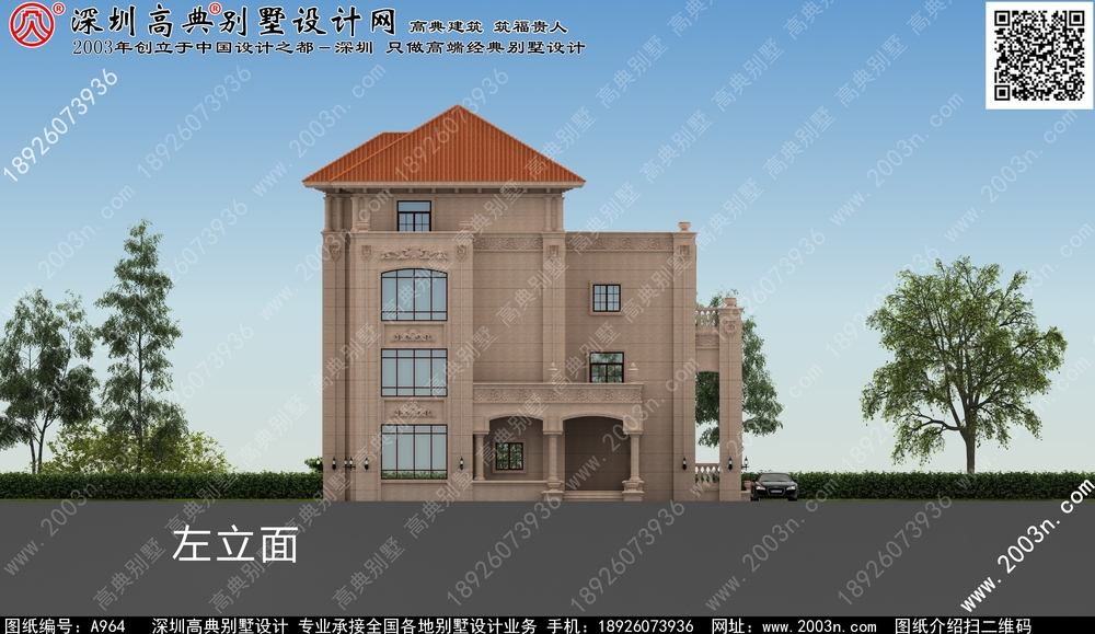 四层别墅设计外观效果图首层178平方米图纸编号a964