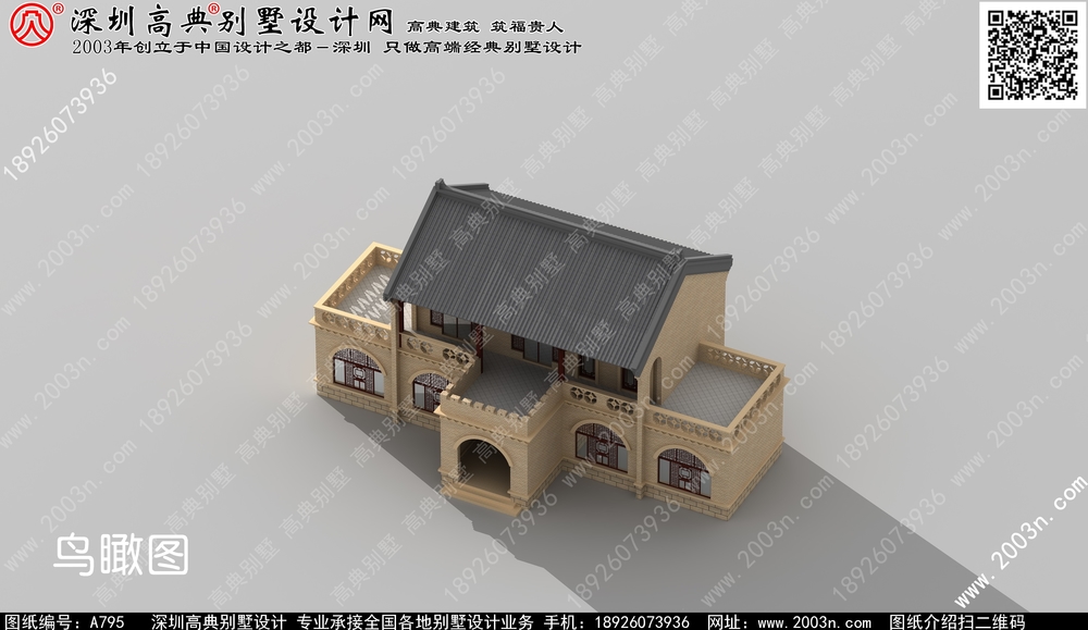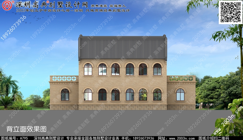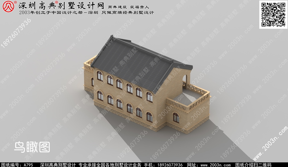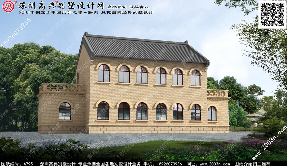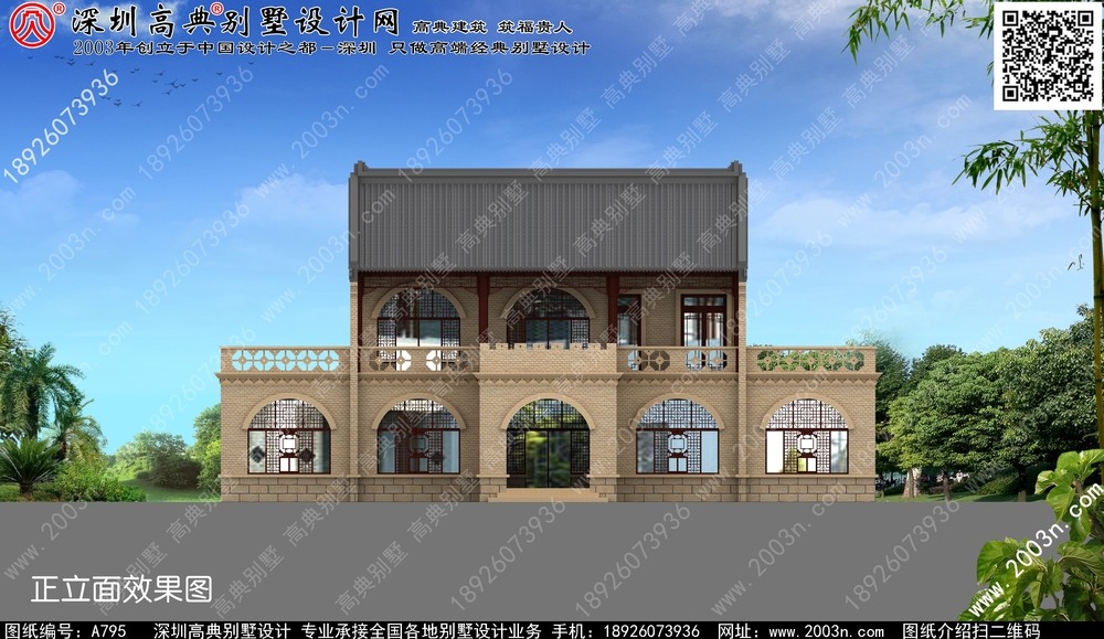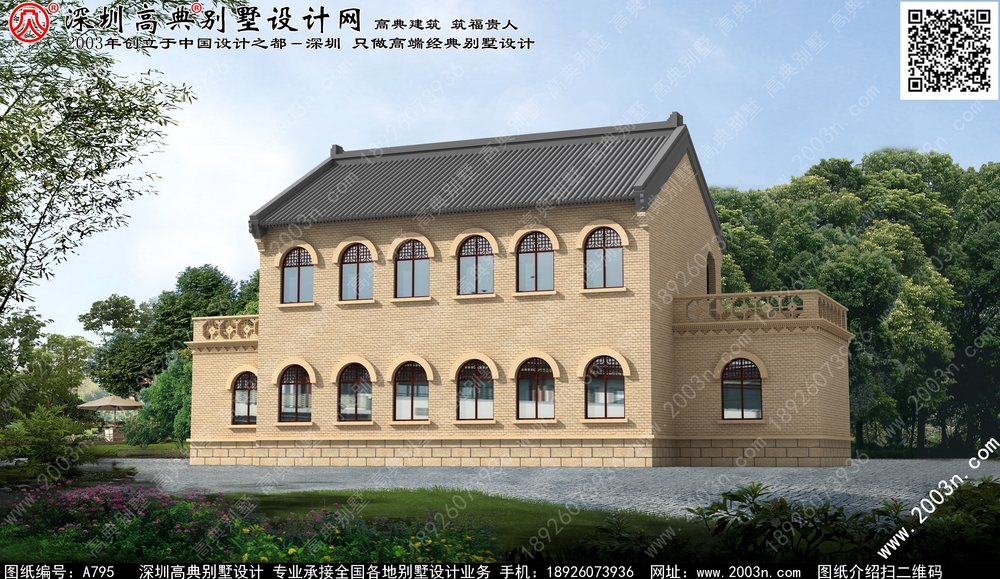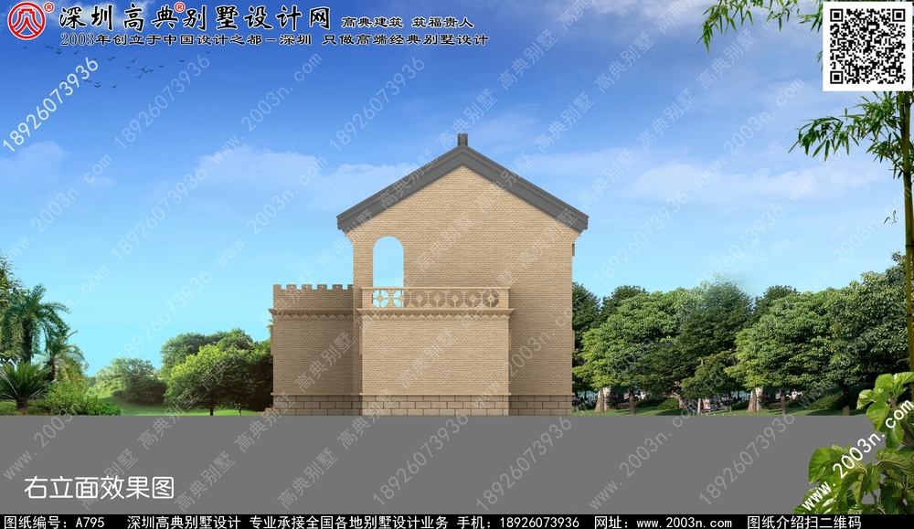 乡村别墅外观效果图首层169平方米图纸编号A795