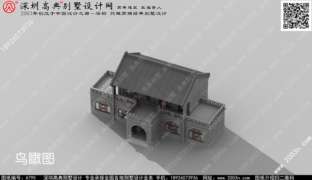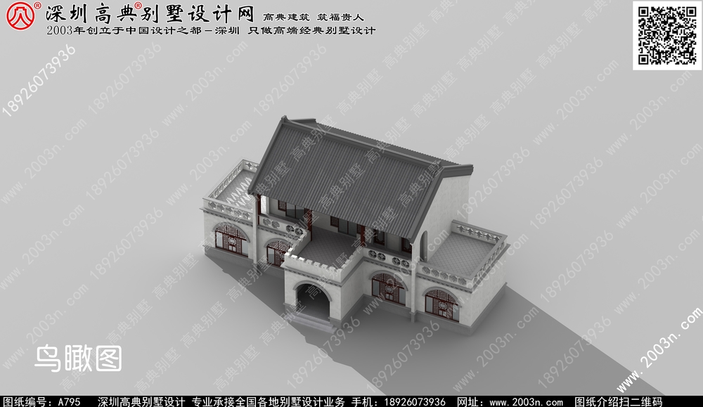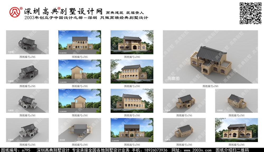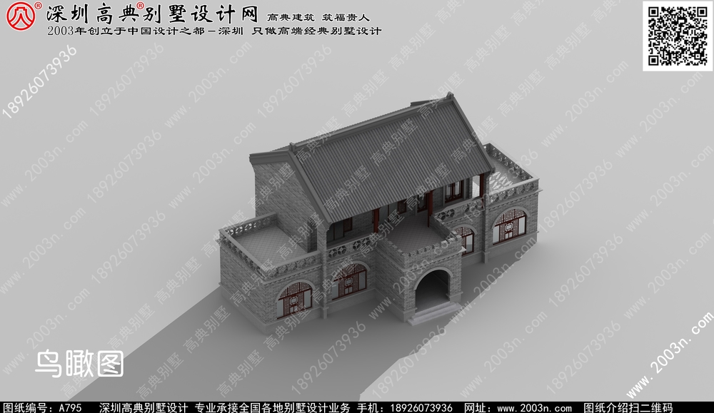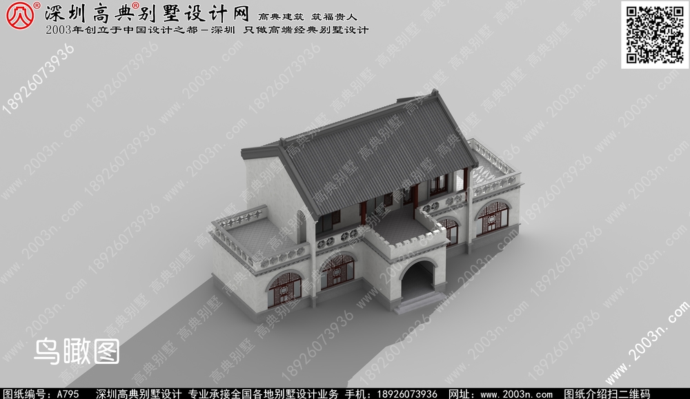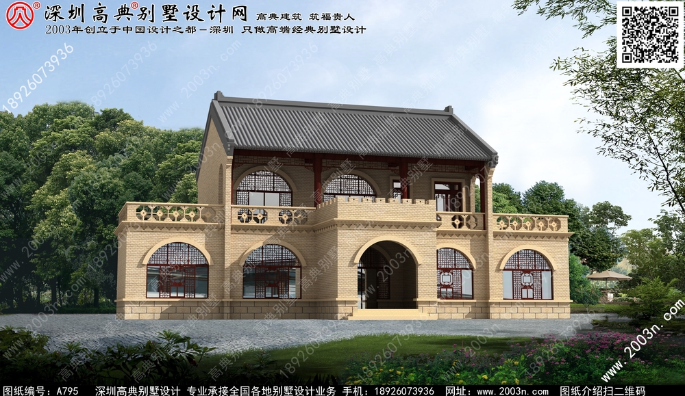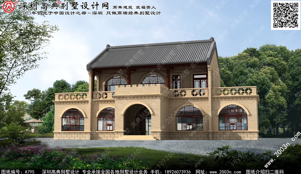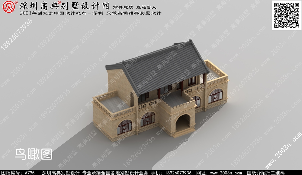乡村别墅外观效果图首层169平方米图纸编号A795