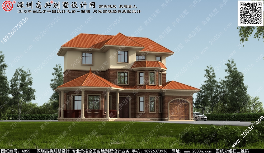 欧式豪华别墅外观图片首层200平方米图纸编号A855