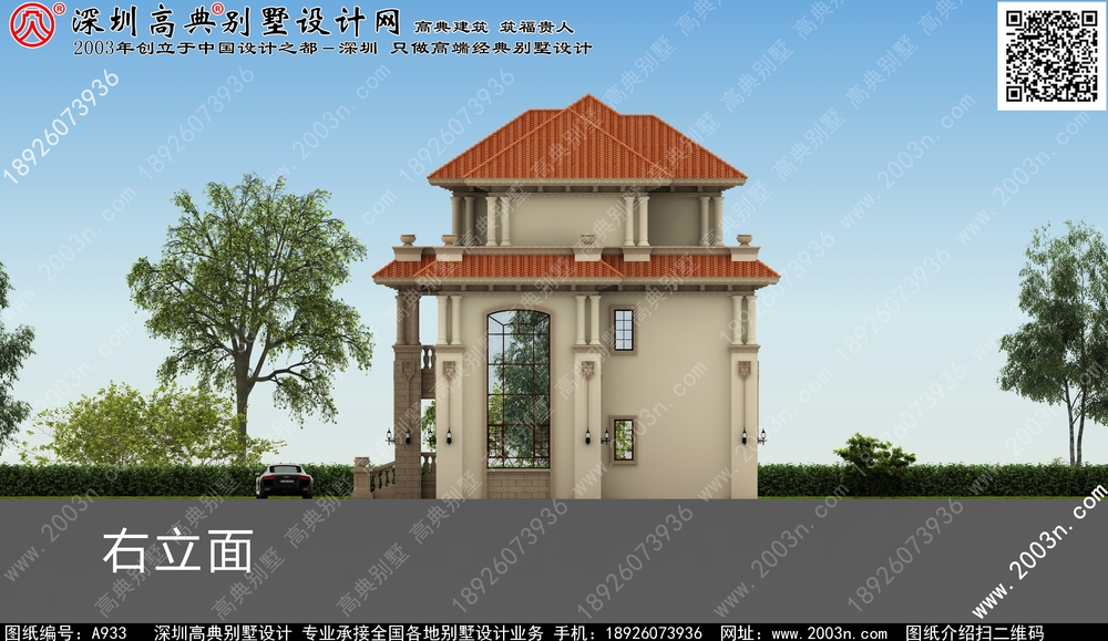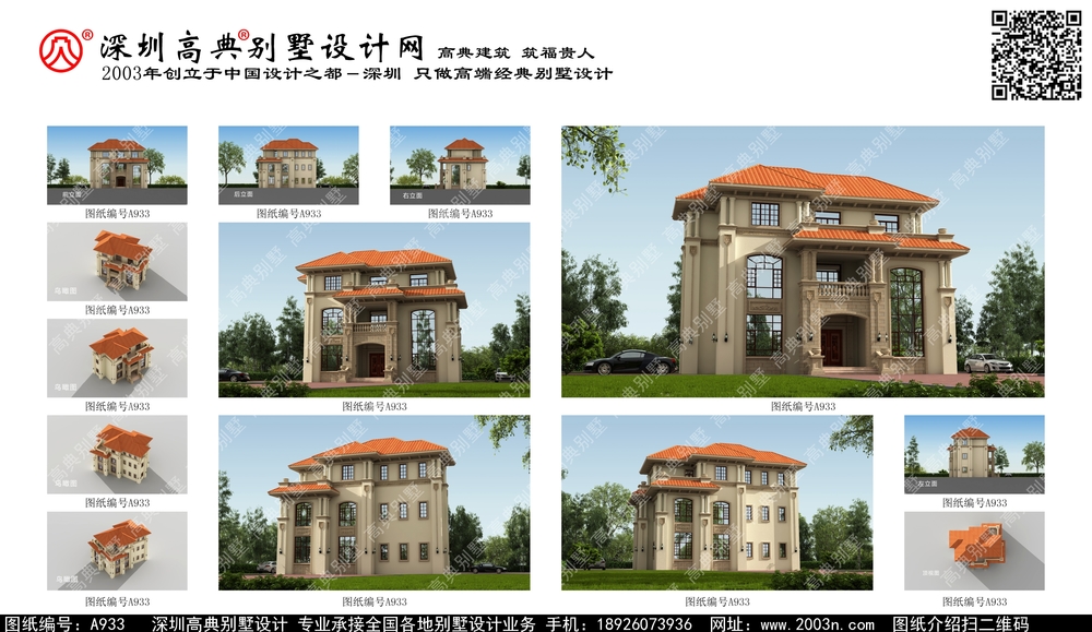 A933号别墅设计图纸及效果图介绍: