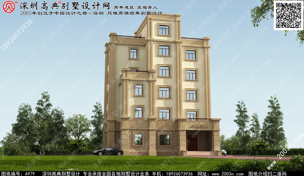 欧式六层别墅效果图片, 小区别墅设计图纸, 别墅图纸下载