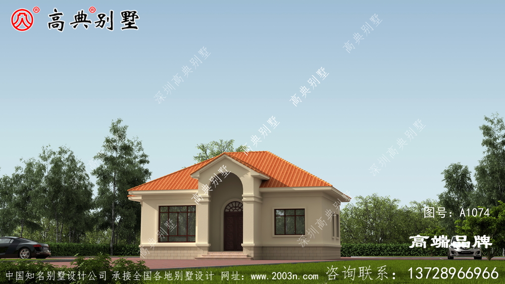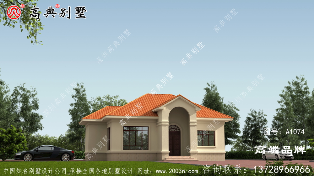 农村简欧式一层别墅外观效果图,简约时尚,外观布局惊艳。立面颜色结合灰白,整体看起来简约时尚,线条干净整洁。